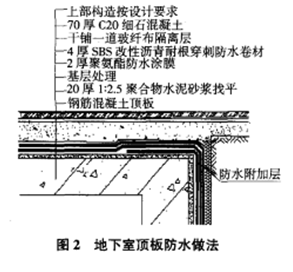地下室頂板防水做法,見圖2。