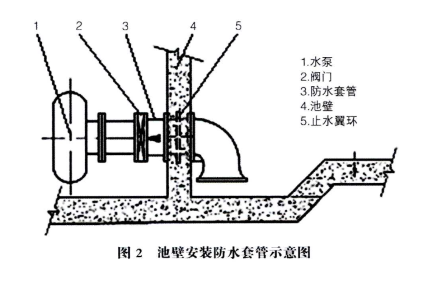 (1)采用止水片對位螺桿對模板加固,用可拆卸塑料錐臺犁堵頭預(yù)留凹坑,拆模后將螺桿沿坑底割除,并用防水水泥砂漿抹乎,確保對托螺桿處不會漏水;采川防水套管和止水翼環(huán)對管道進(jìn)行防滲和抗振處理,避免了水泵等設(shè)備運行時震動使管道與混凝十接觸處松動而滲漏,提高水池體結(jié)構(gòu)的抗?jié)B性能。